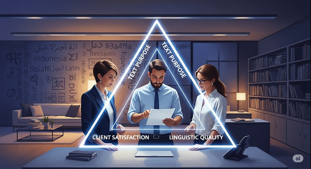 Dari hasil riset kecil itu, saya menemukan tiga elemen penting dalam definisi terjemahan berkualitas, yaitu: klien, tujuan/fungsi, dan aspek kebahasaan. Terjemahan berkualitas adalah terjemahan yang memenuhi ekspektasi klien, optimal mencapai tujuan/fungsinya, dan beres secara kebahasaan (akurasi, tata bahasa, peristilahan, penulisan).